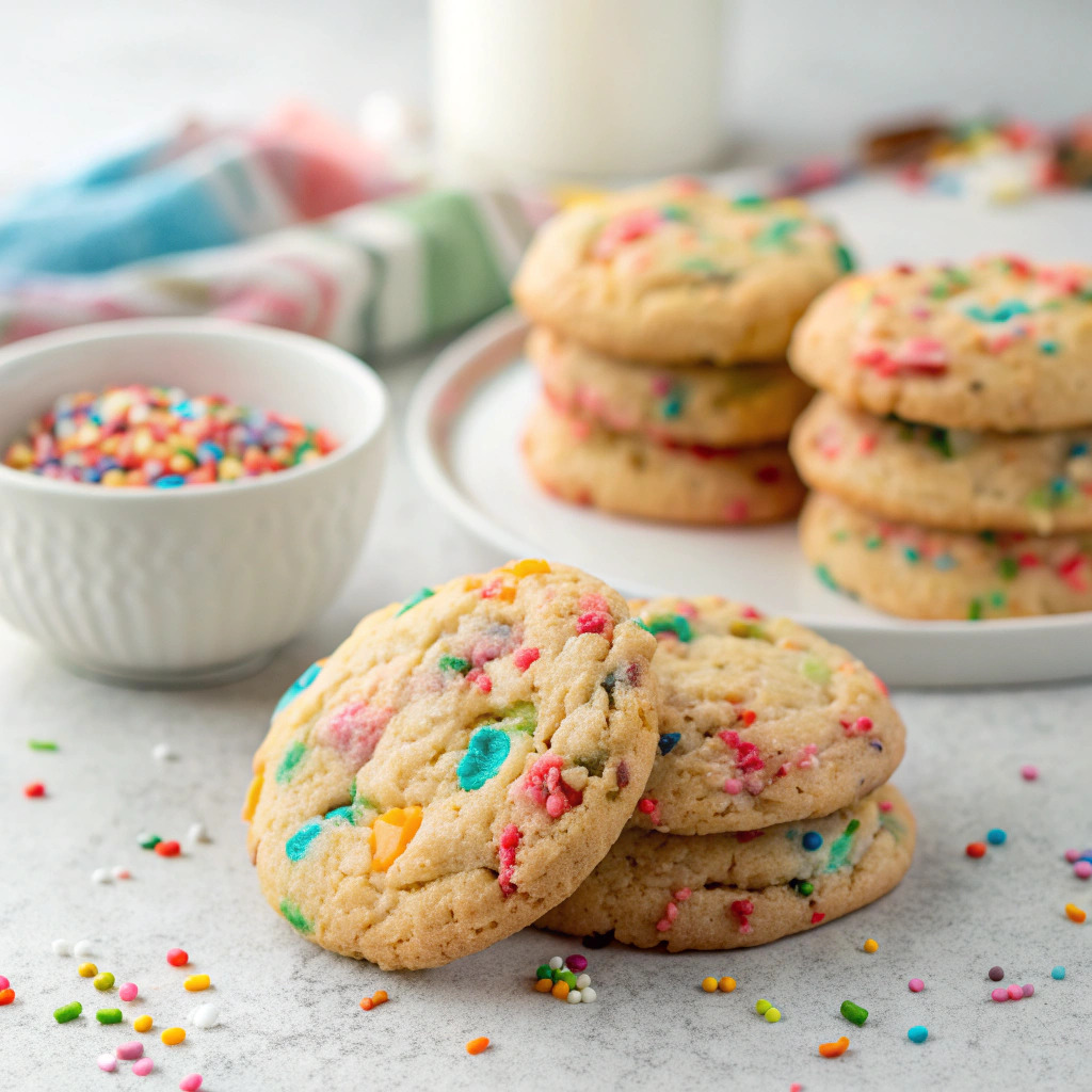 Serve these funfetti cookies warm from the oven for a delightful experience, as the sprinkles and soft texture are best enjoyed fresh. Pair them with a tall glass of milk or your favorite hot beverage for a comforting treat. They also make great gifts when packaged in decorative bags or boxes, perfect for birthdays, holidays, or just because. To elevate the presentation, consider stacking them in a tiered dessert stand for a colorful display at parties or gatherings.
